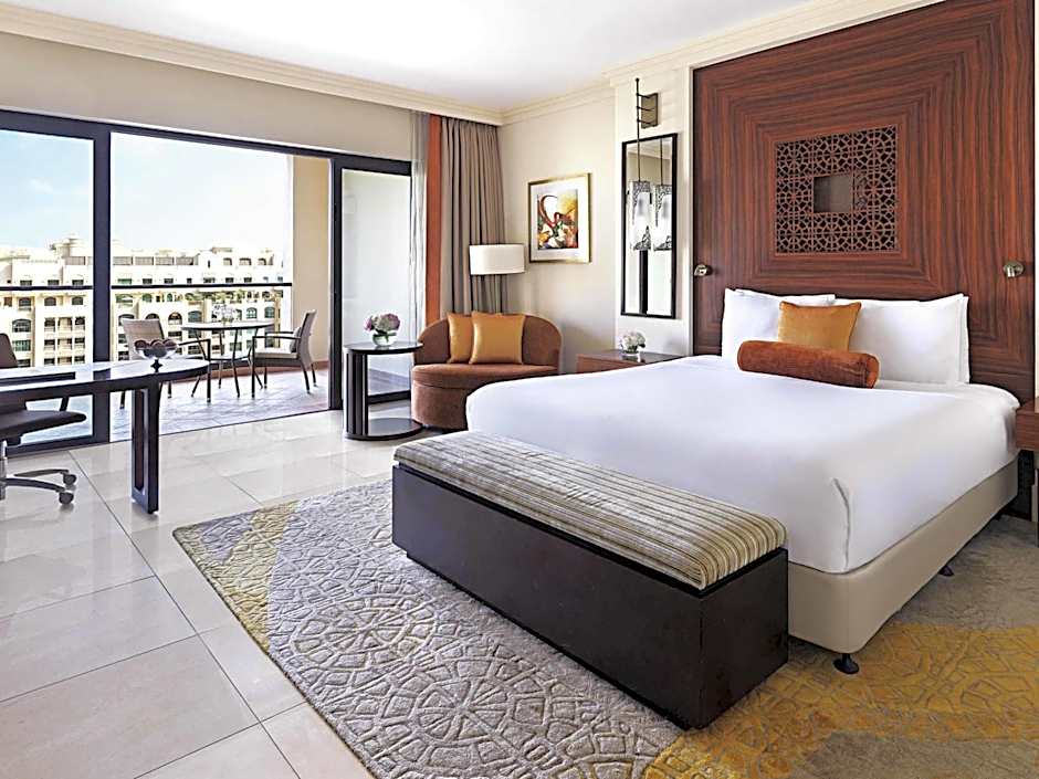 The room features a large balcony with panoramic views of the Arabian Gulf.